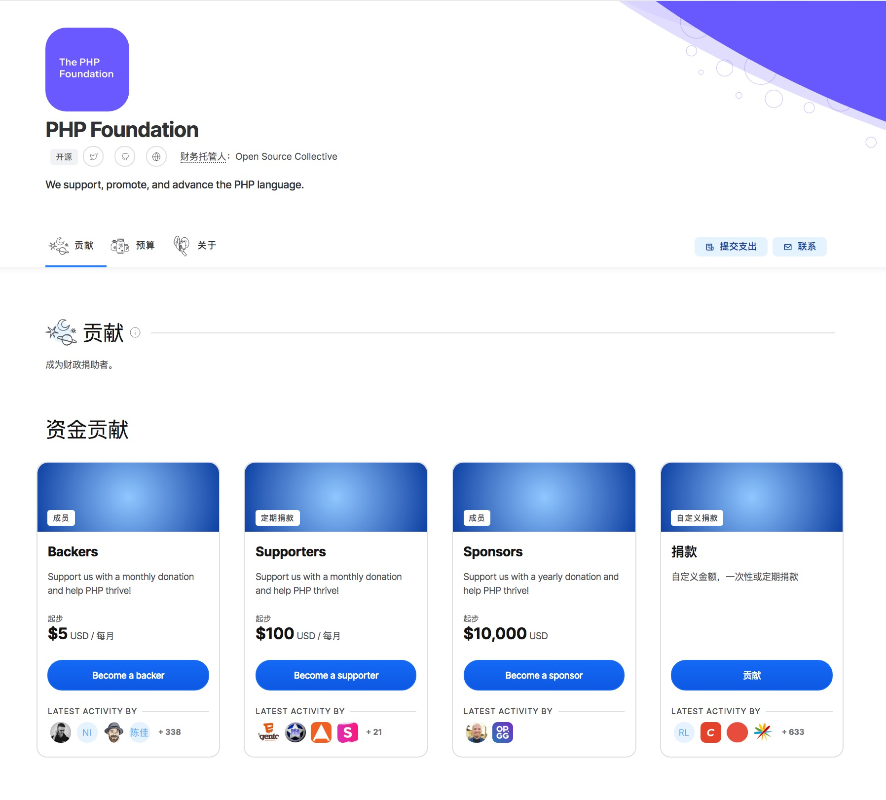PHP基金会将是一个非盈利组织,其使命是确保PHP语言的长寿和繁荣。同时,该基金会将通过 Open Collective 来实现。Open Collective 是一家处理法律和会计方面的基金会服务提供商,Vue.js、Open Web Docs、webpack、Yii Framework 等多个开源项目都采用其服务。
