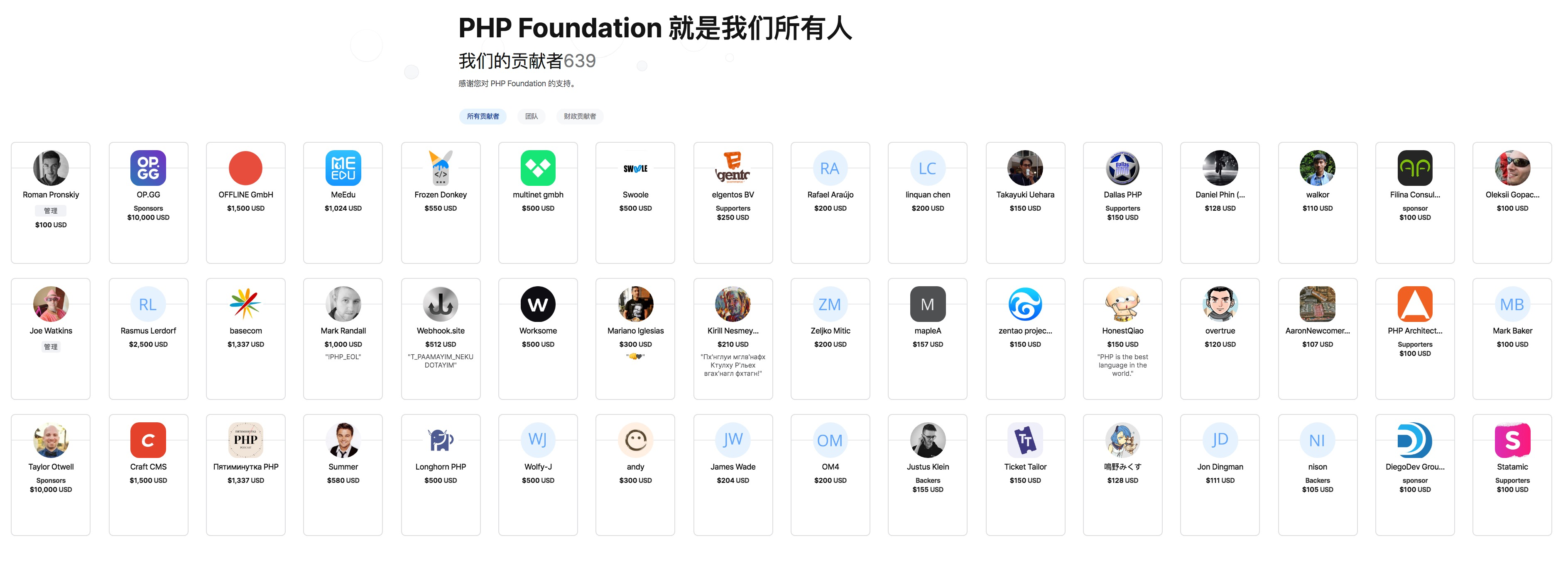 资助的形式可以是单次的,也可以是月度和年度的方式支付,最少支付1刀,支付完,你的头像都会出现在贡献者排行榜上哟,PHPer 支持起来吧,厉兵秣马,胜利在即!
