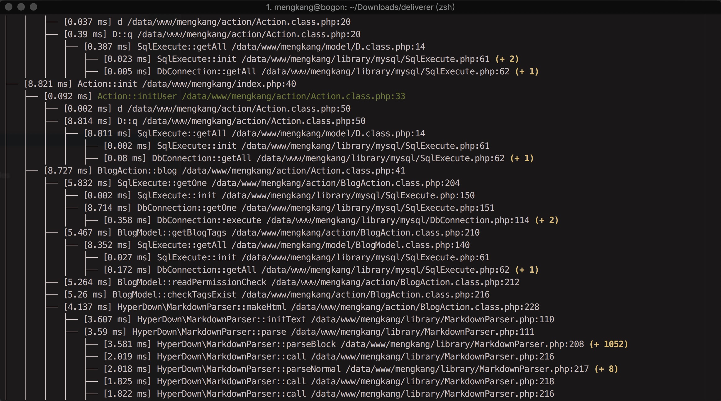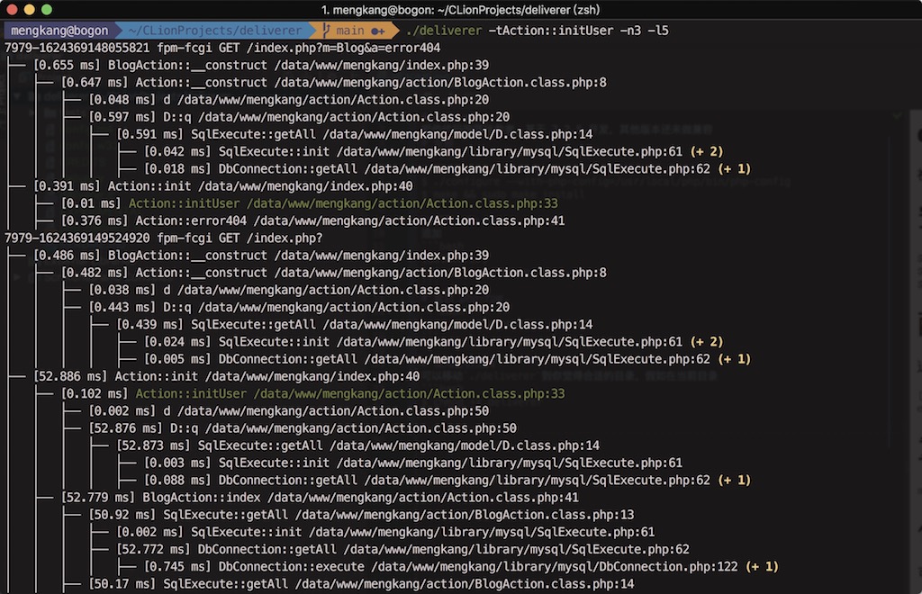 $ ./bin/deliverer -t这样会一直监控所有的 php 进程的执行