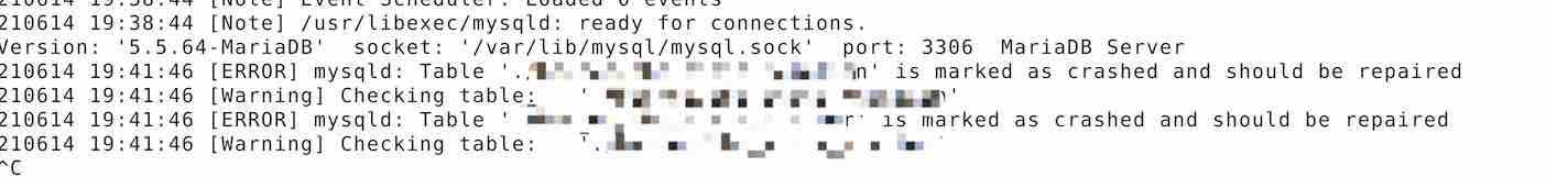 httpd   28025 apache   13u     IPv4          212419866       0t0       TCP localhost:38830->localhost:mysql (ESTABLISHED)然后通过ps找到mysql进程错误日志路径,tail 发现是有一些表坏了。
